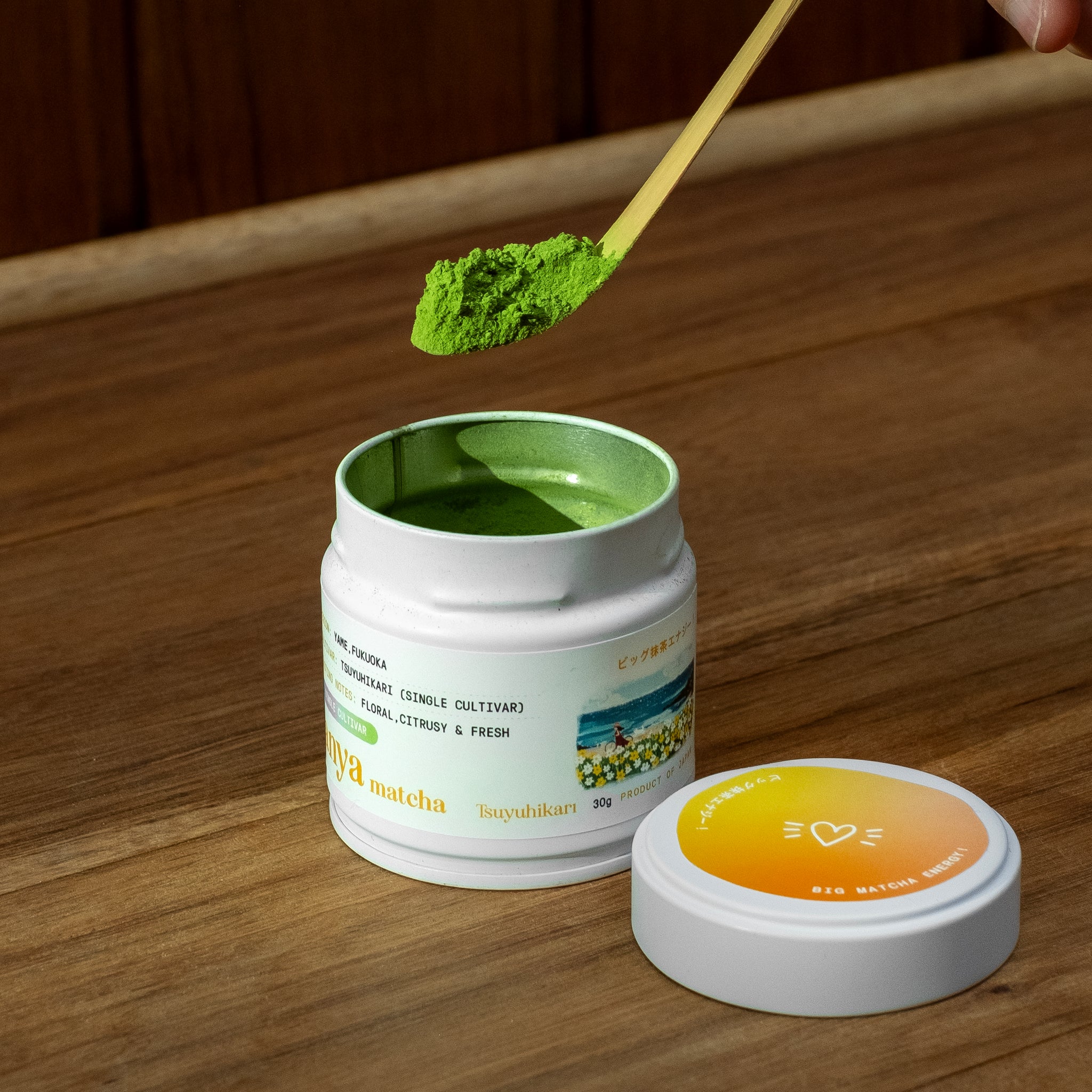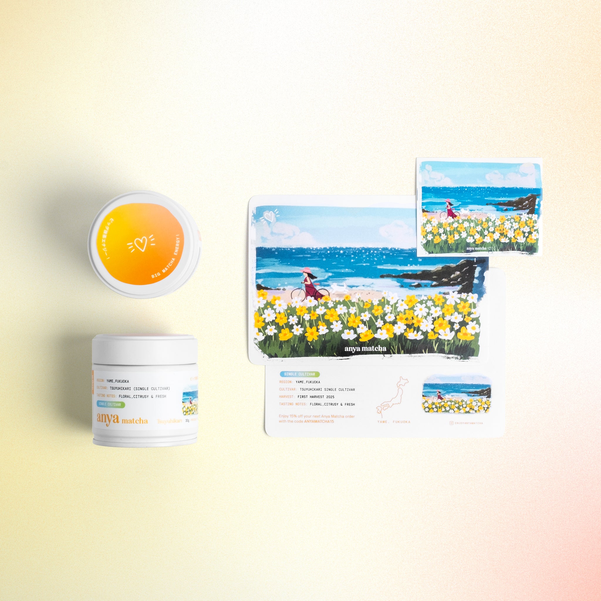 A rare single cultivar matcha from Yame, Fukuoka - bright as yuzu, soft as sakura, and refreshing as a summer breeze. Tsuyuhikari offers citrusy brightness, a smooth body with gentle umami, and a clean, floral finish that lingers like sunlight over the sea.