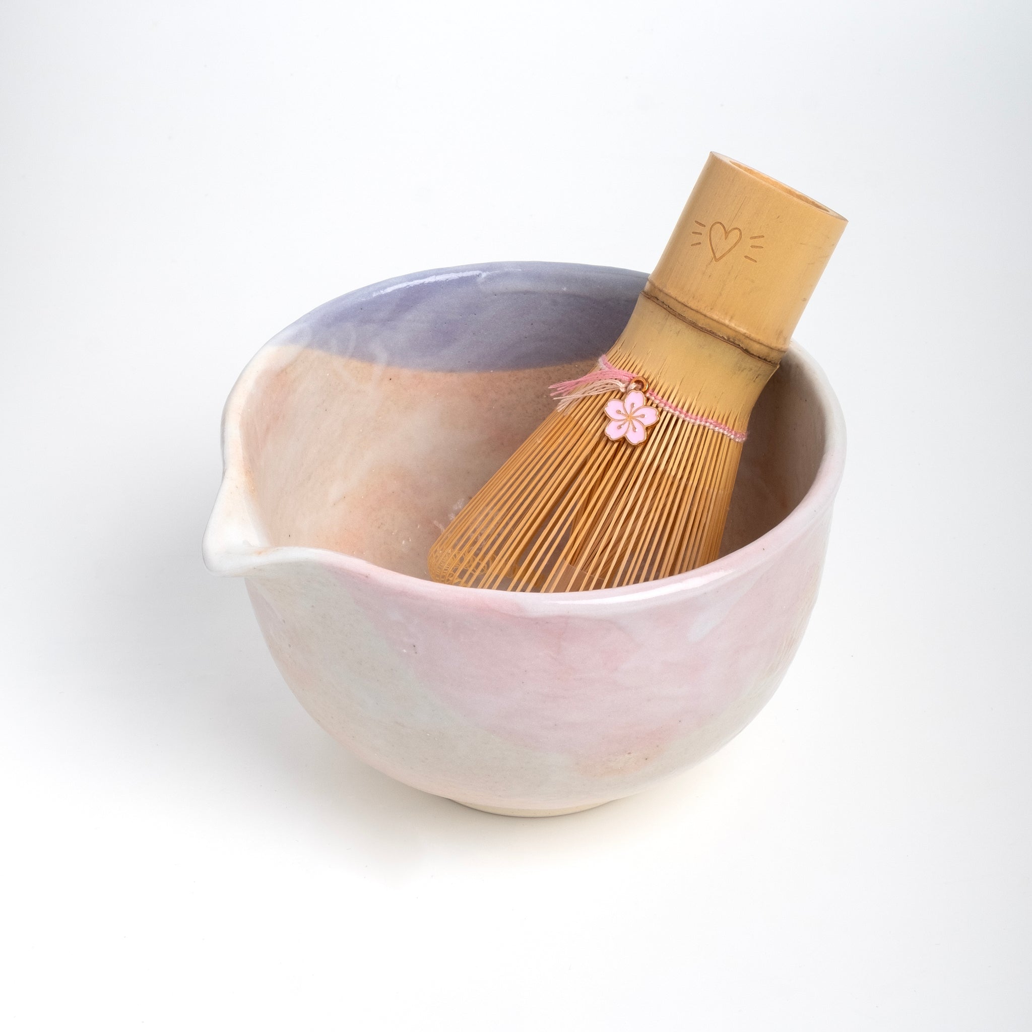 Sweet, whimsical, and full of charm - the Konpeitō Kurīmu Matcha Pour Bowl is inspired by the dreamy pastel tones of konpeitō, Japan’s beloved star-shaped sugar candy. Its soft blush-pink glaze and delicate marbled texture add a sprinkle of sweetness to your matcha ritual.
