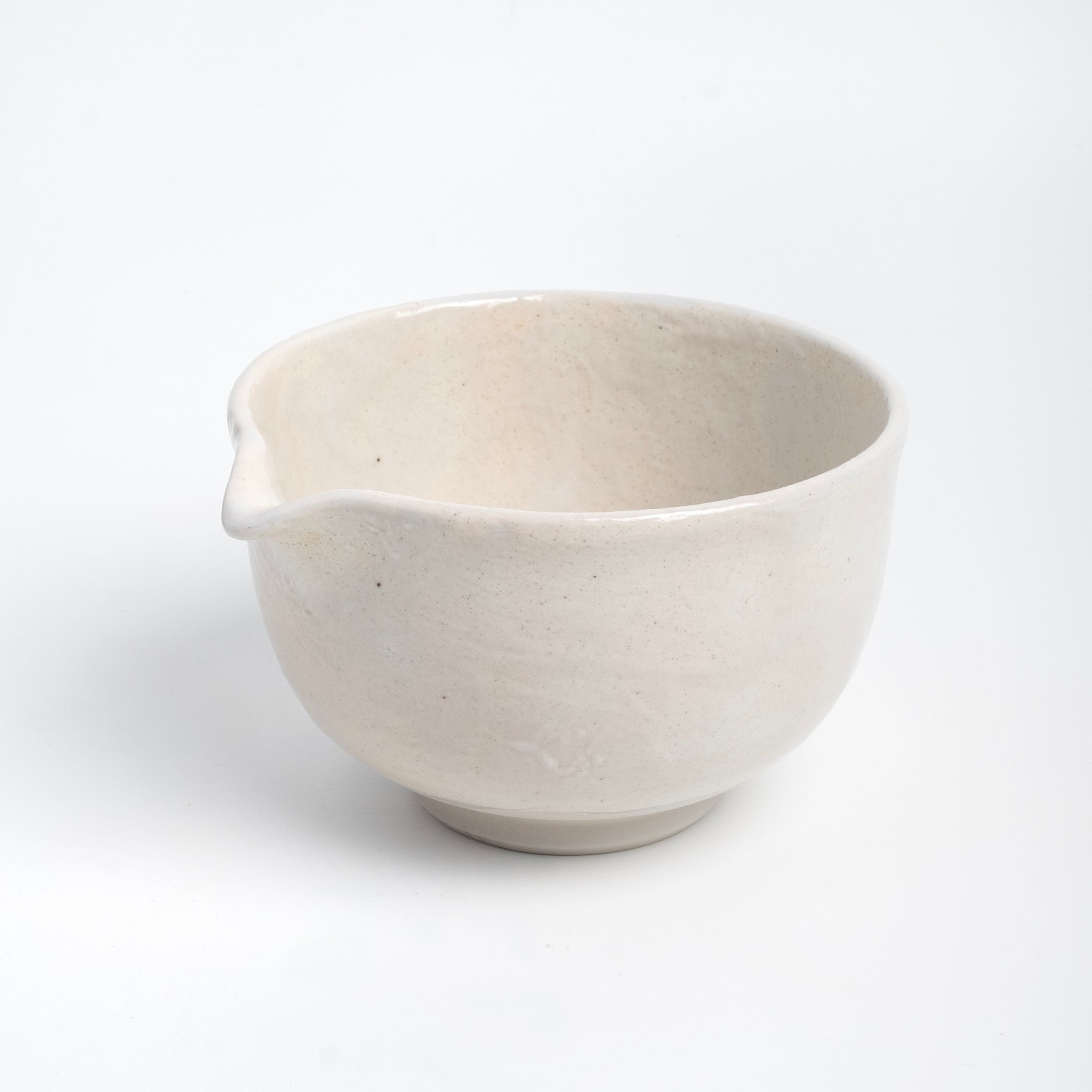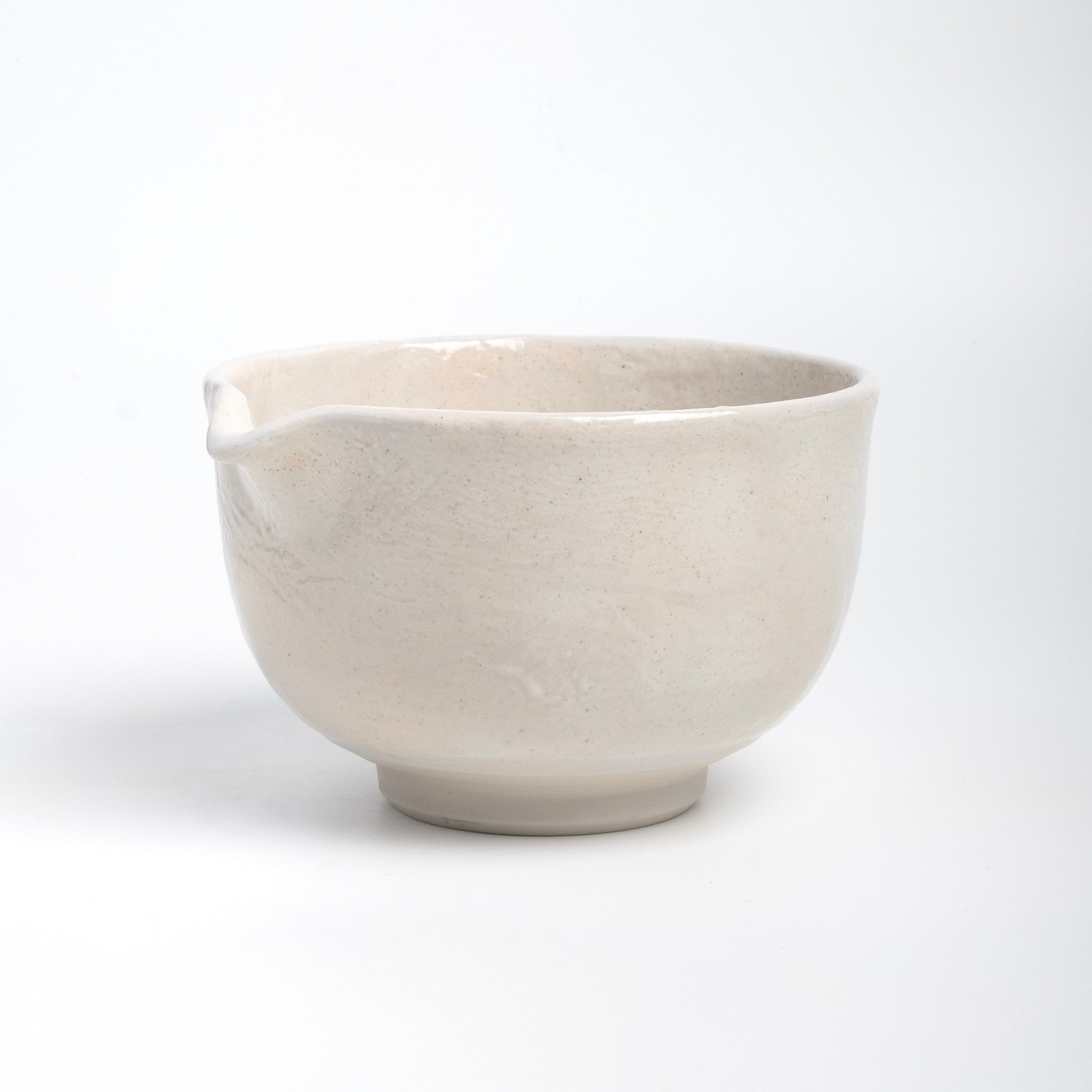 Designed with a smooth, rounded spout, it allows for precise, controlled pouring, perfect for matcha lattes, iced matcha, or sharing your whisked tea with ease. The bowl sits naturally in your hands, the fully glazed surface offers a creamy-smooth feel inside and out.