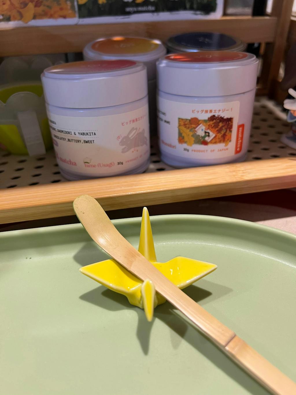 This glazed chasaku rest is made to imitate Origami, Handcrafted and detailed by skilled artisans in Gifu prefecture, this cute and creative matcha accessories adds a touch of Japan to your matcha experience.